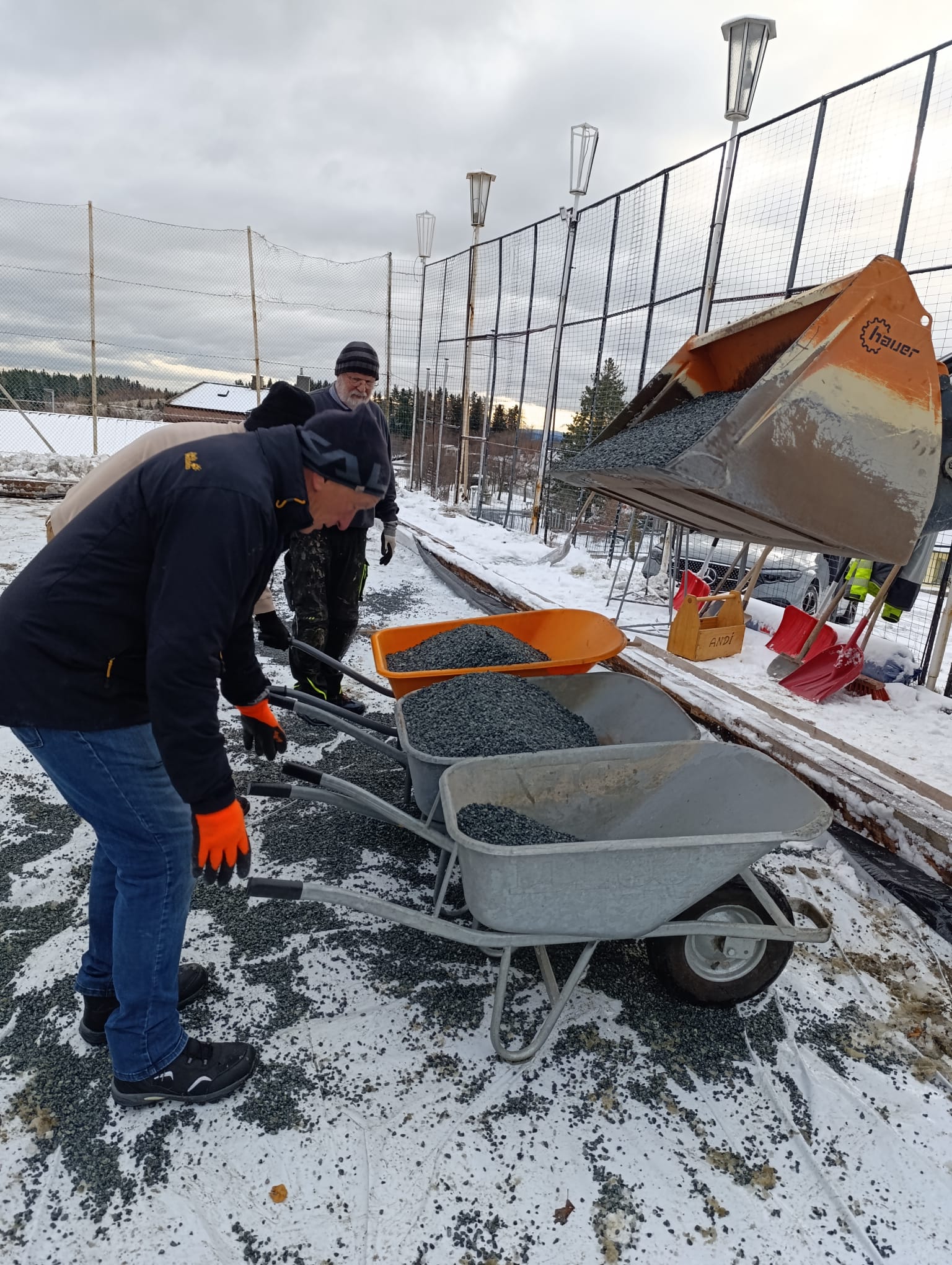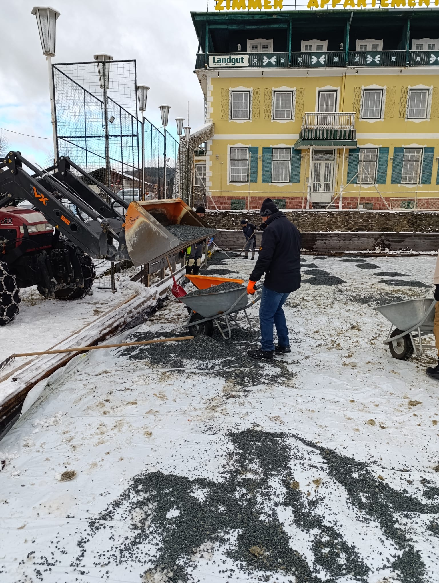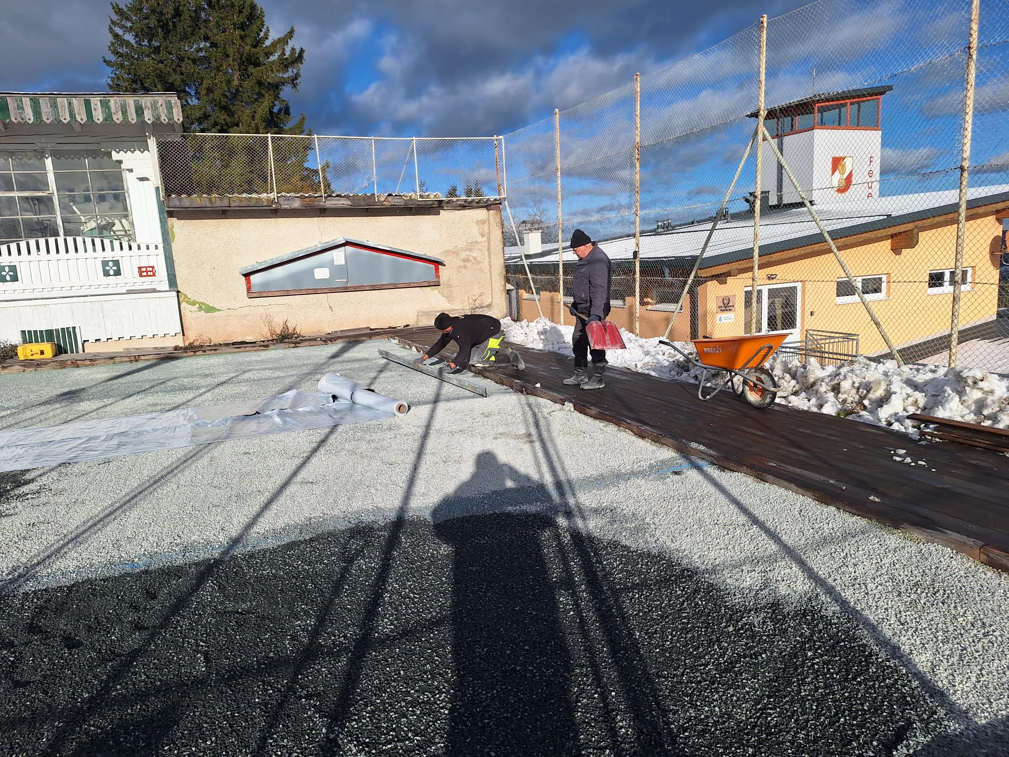 Am 26.11. wurde in einer großen Aktion der gesamte Platz mit ca. 26m³ Kies aufgefüllt und mit Laserunterstützung auf ein komplett waagrechtes Niveau abgezogen. Für die großartige Mithilfe und Zusammenarbeit möchten ich mich, als Obmann vom DEV, bei den Mitarbeitern der Gemeinde Christian Stögerer, Martin Plank und Reini Stangl sowie bei den Helfer/innen Rosa und Martin Tauchner, Ferdi Glatz, Florian Jajtic vom Glamping Park, Hannes Hechtl für den Einsatz mit seinem Lader und bei meiner Frau Renate ganz herzlich bedanken. Ohne der tatkräftigen Unterstützung ist so ein Projekt nicht realisierbar!