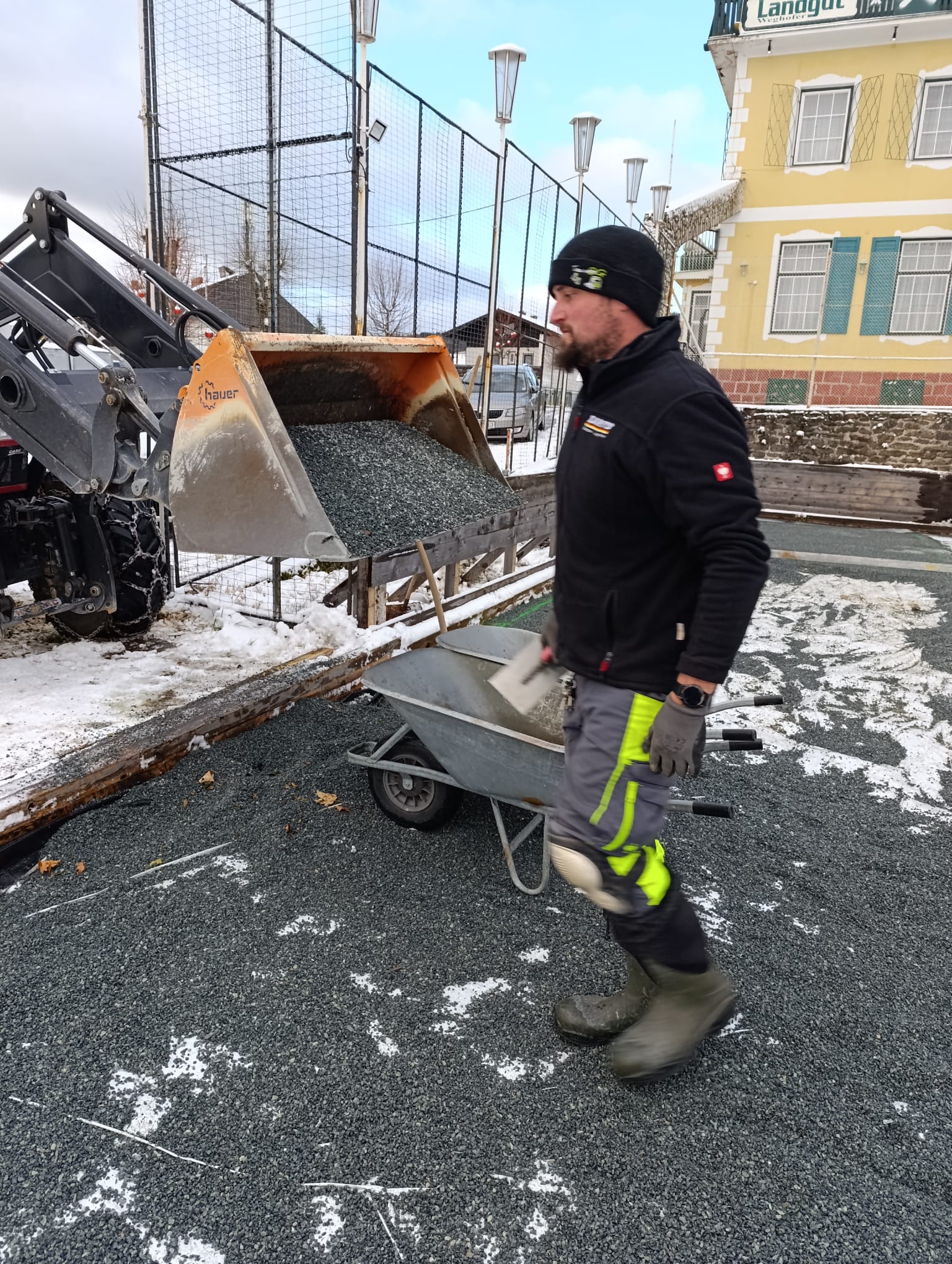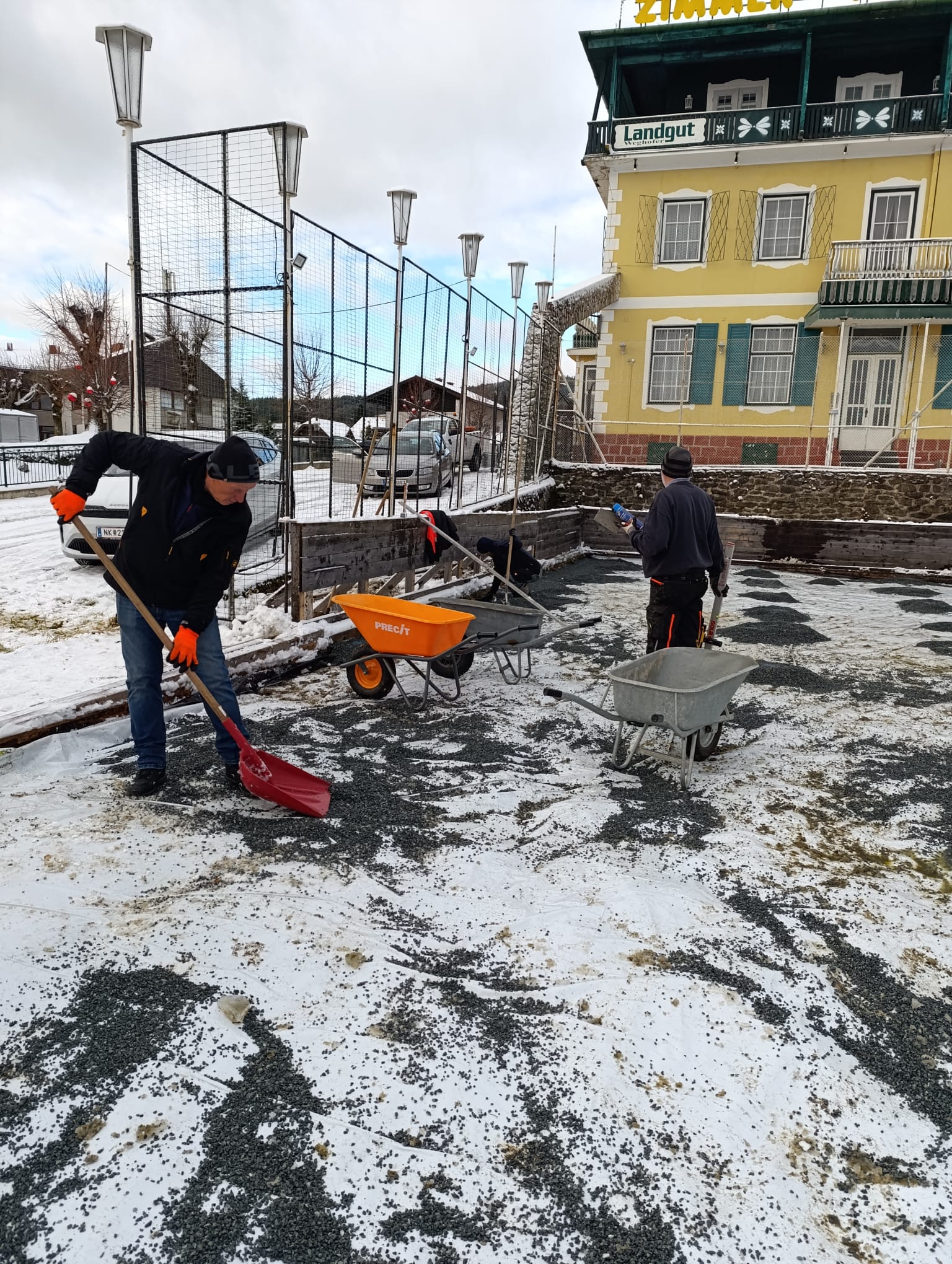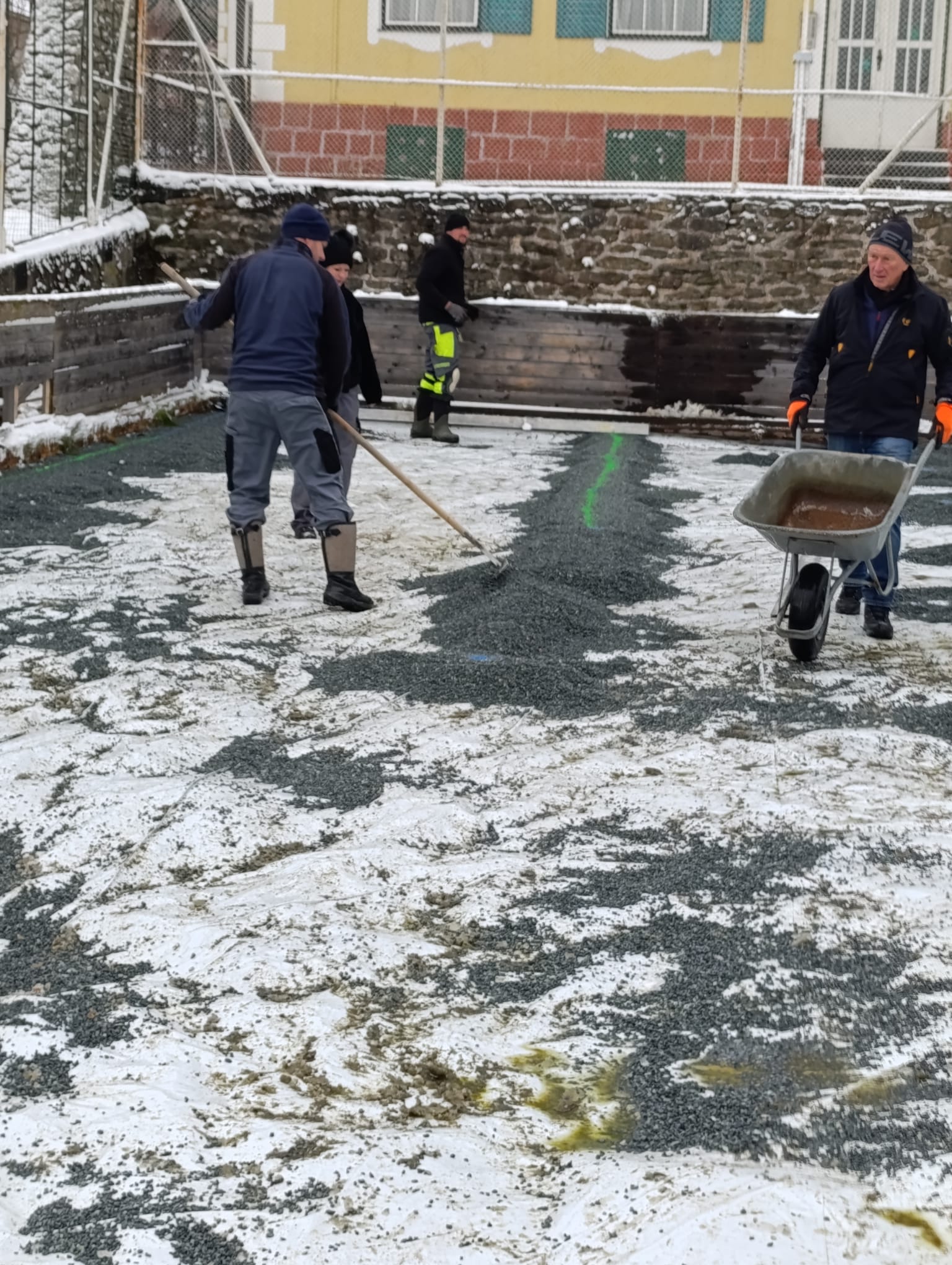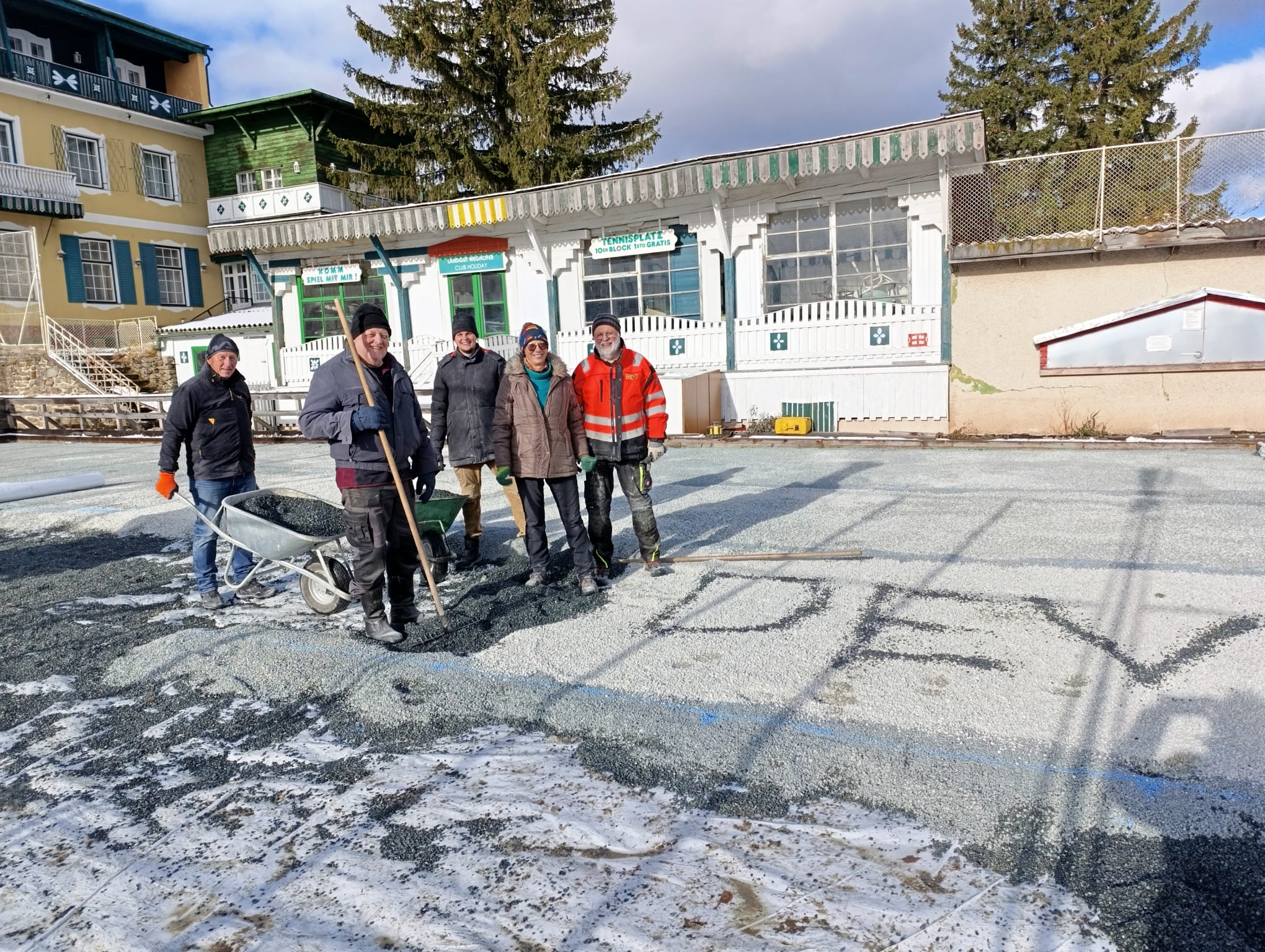 Am 26.11. wurde in einer großen Aktion der gesamte Platz mit ca. 26m³ Kies aufgefüllt und mit Laserunterstützung auf ein komplett waagrechtes Niveau abgezogen. Für die großartige Mithilfe und Zusammenarbeit möchten ich mich, als Obmann vom DEV, bei den Mitarbeitern der Gemeinde Christian Stögerer, Martin Plank und Reini Stangl sowie bei den Helfer/innen Rosa und Martin Tauchner, Ferdi Glatz, Florian Jajtic vom Glamping Park, Hannes Hechtl für den Einsatz mit seinem Lader und bei meiner Frau Renate ganz herzlich bedanken. Ohne der tatkräftigen Unterstützung ist so ein Projekt nicht realisierbar!
