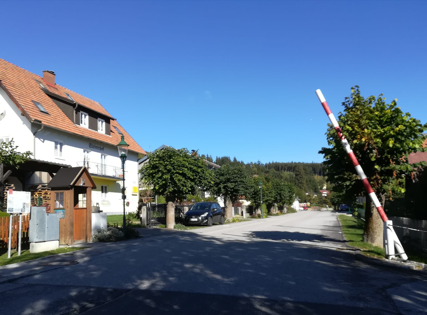 Der Russenschranken gegenüber dem Grenzhäuschen war 2021 schon in sehr schlechtem Zustand und wurde vom Dorferneuerungsverein demontiert, abgeschliffen, mit neuer Farbe versehen und wieder montiert.
