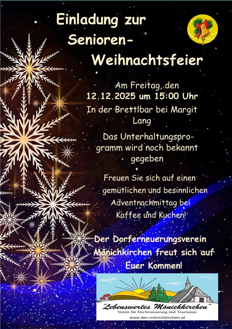 Alle Mönichkirchner Senioren waren herzlich eingeladen zur Seniorenweihnachtsfeier in die Brettlbar bei Margit Lang.