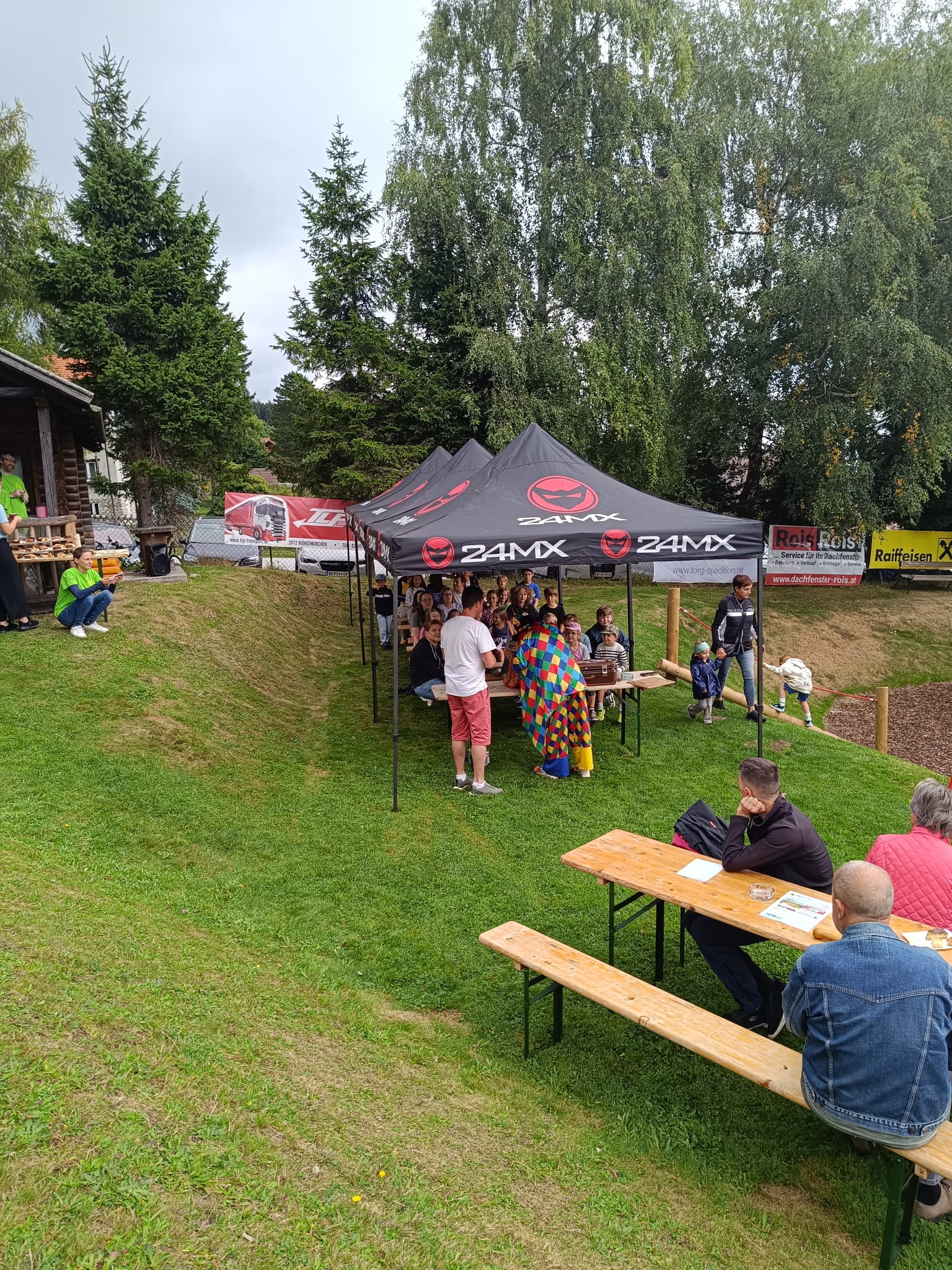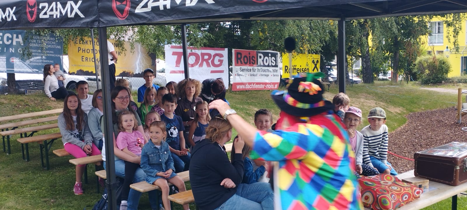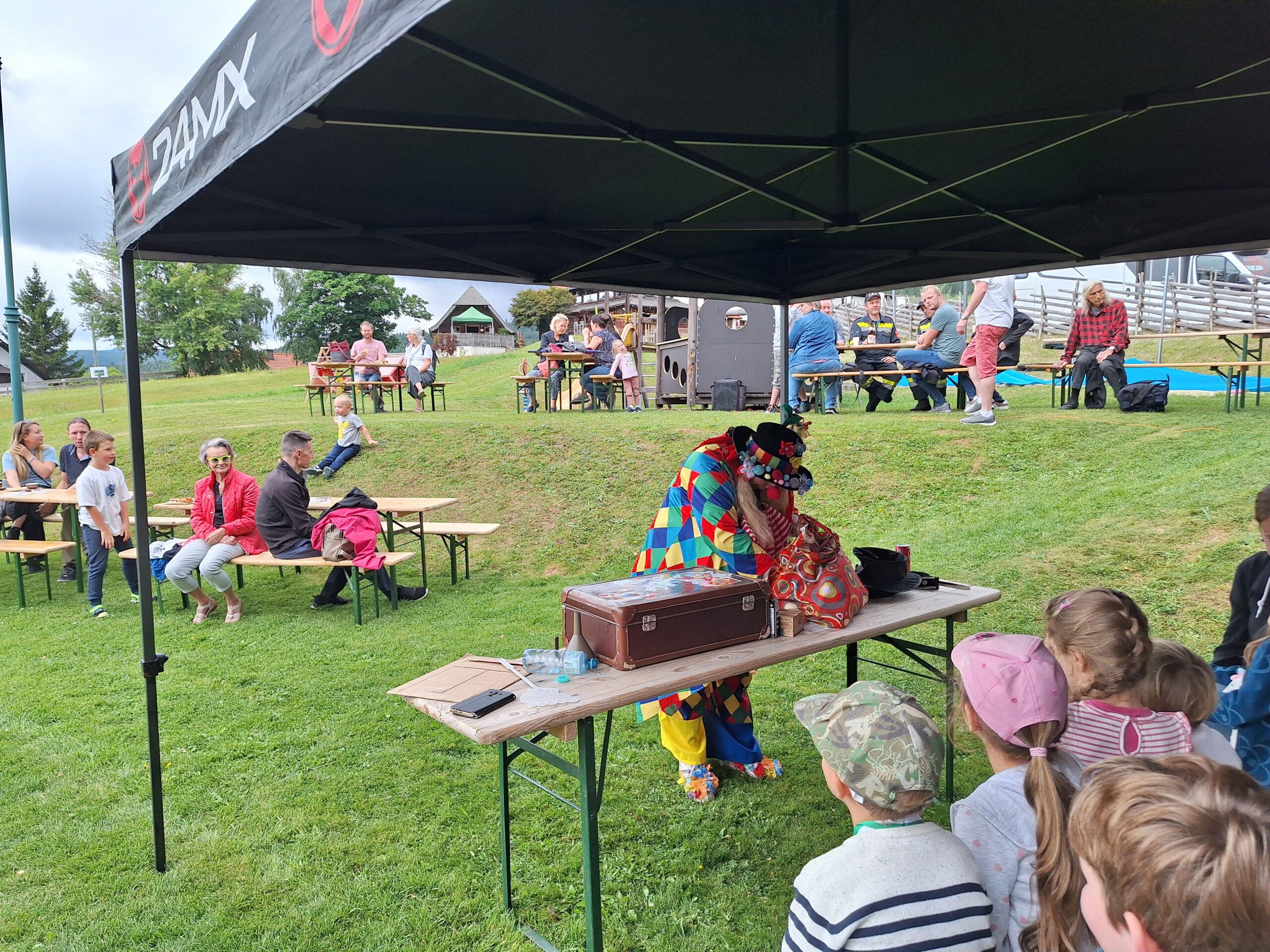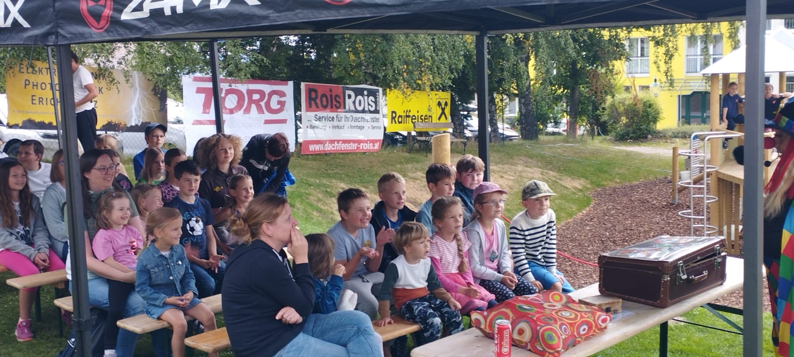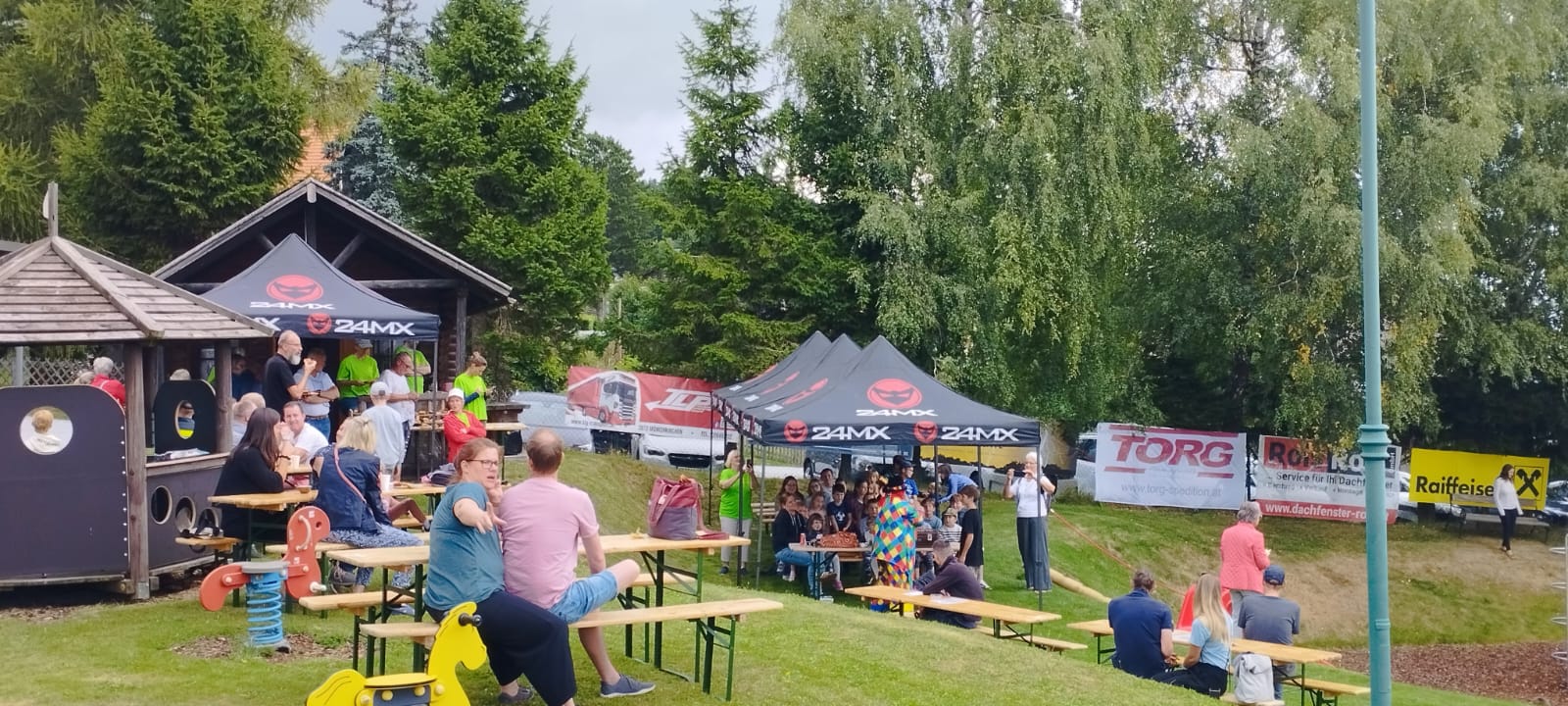Ein fröhliches Kinderspielefest lockte am Samstag, dem 30. August 2025, zahlreiche Familien zum neuen Kinderspielplatz in Mönichkirchen. Pünktlich um 14:00 Uhr eröffnete ein bunter Nachmittag mit Clown- und Zaubershow die Veranstaltung und sorgte sofort für gute Laune bei Klein und Groß.