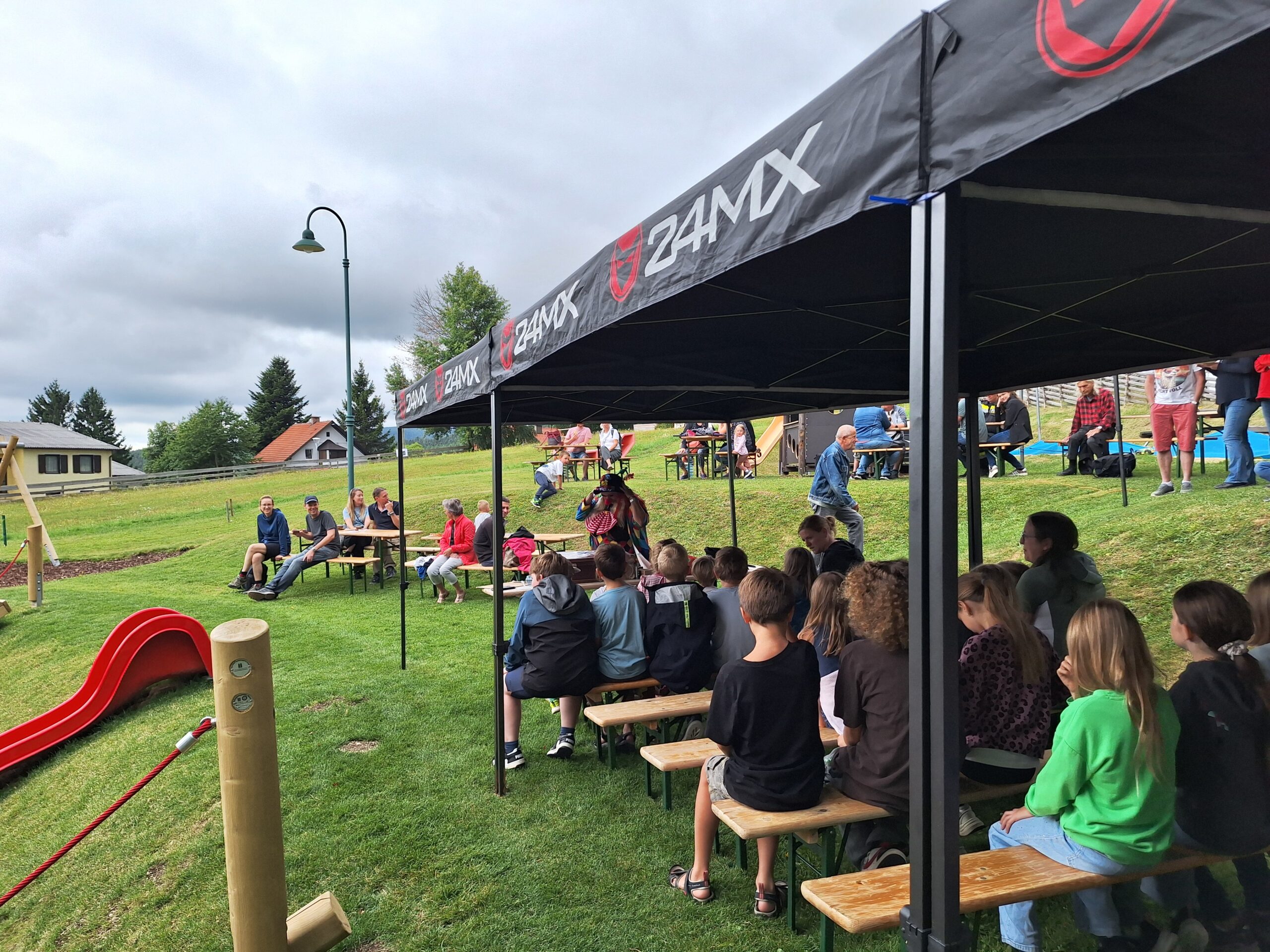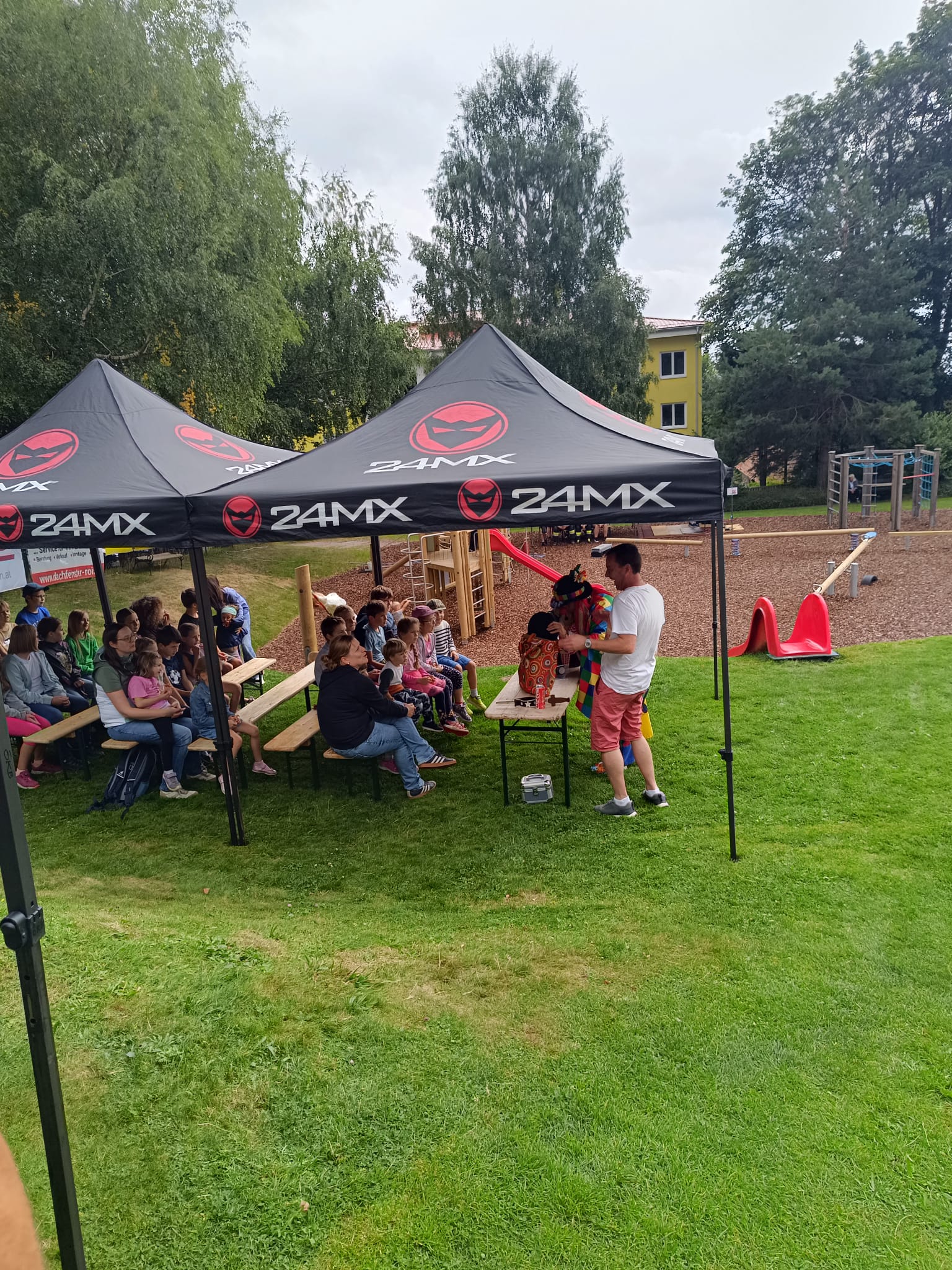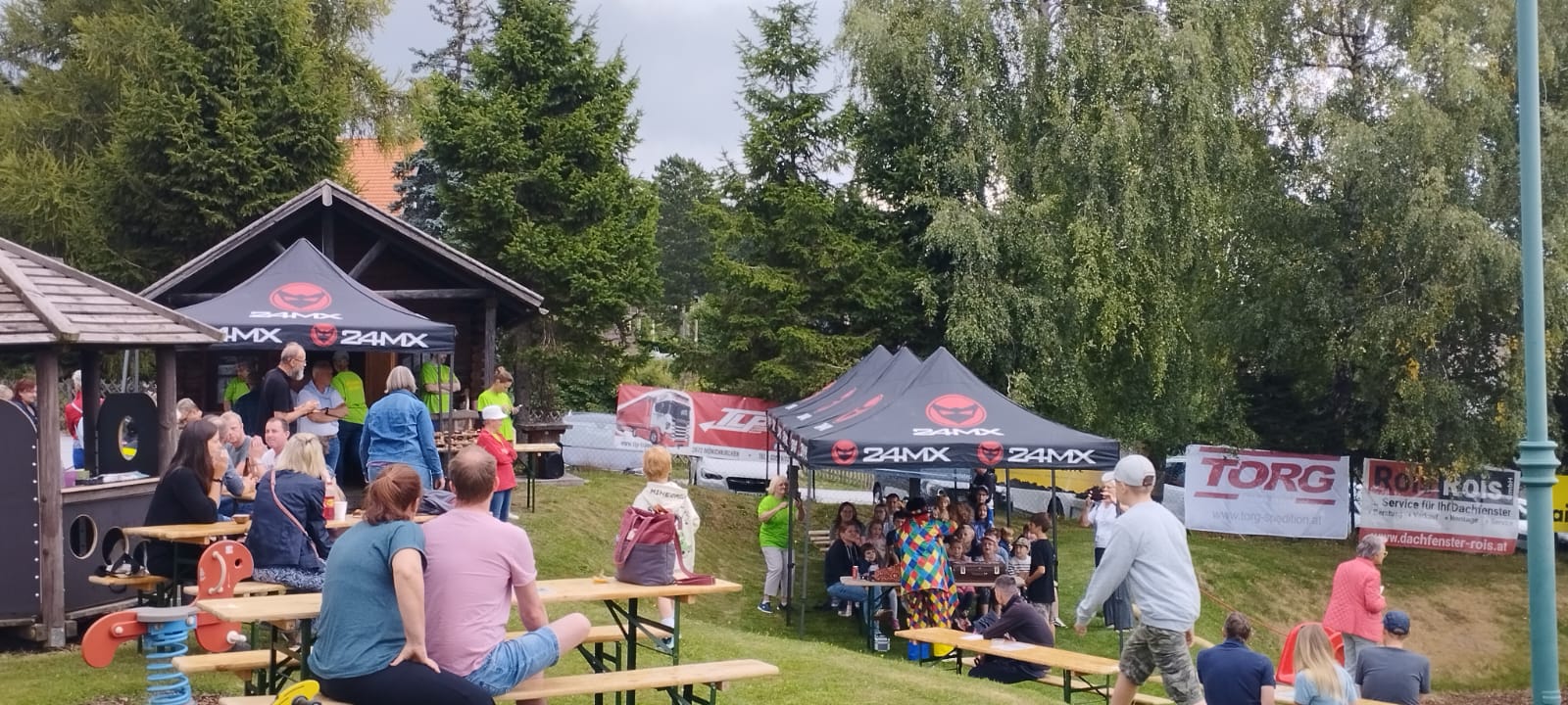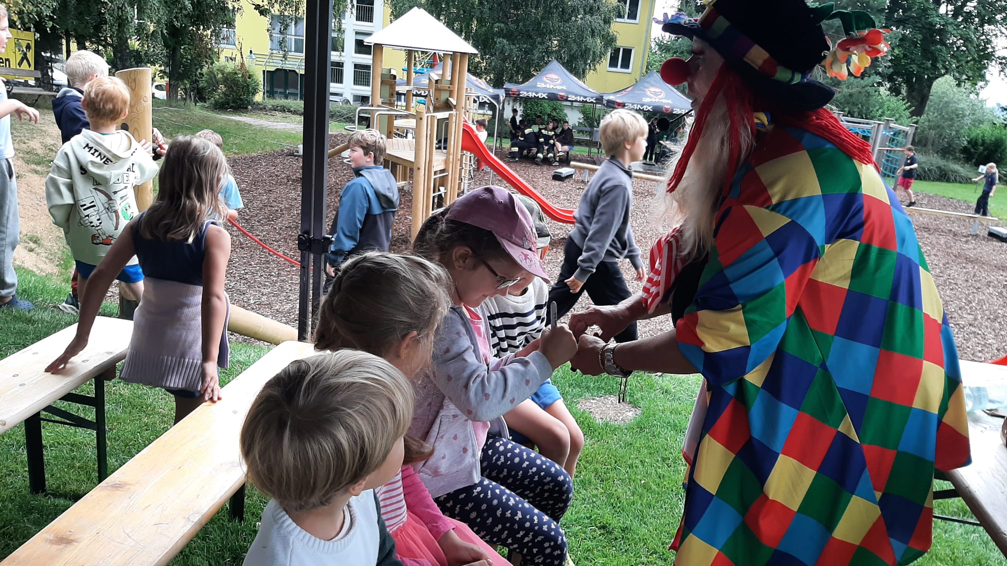 Ein fröhliches Kinderspielefest lockte am Samstag, dem 30. August 2025, zahlreiche Familien zum neuen Kinderspielplatz in Mönichkirchen. Pünktlich um 14:00 Uhr eröffnete ein bunter Nachmittag mit Clown- und Zaubershow die Veranstaltung und sorgte sofort für gute Laune bei Klein und Groß.