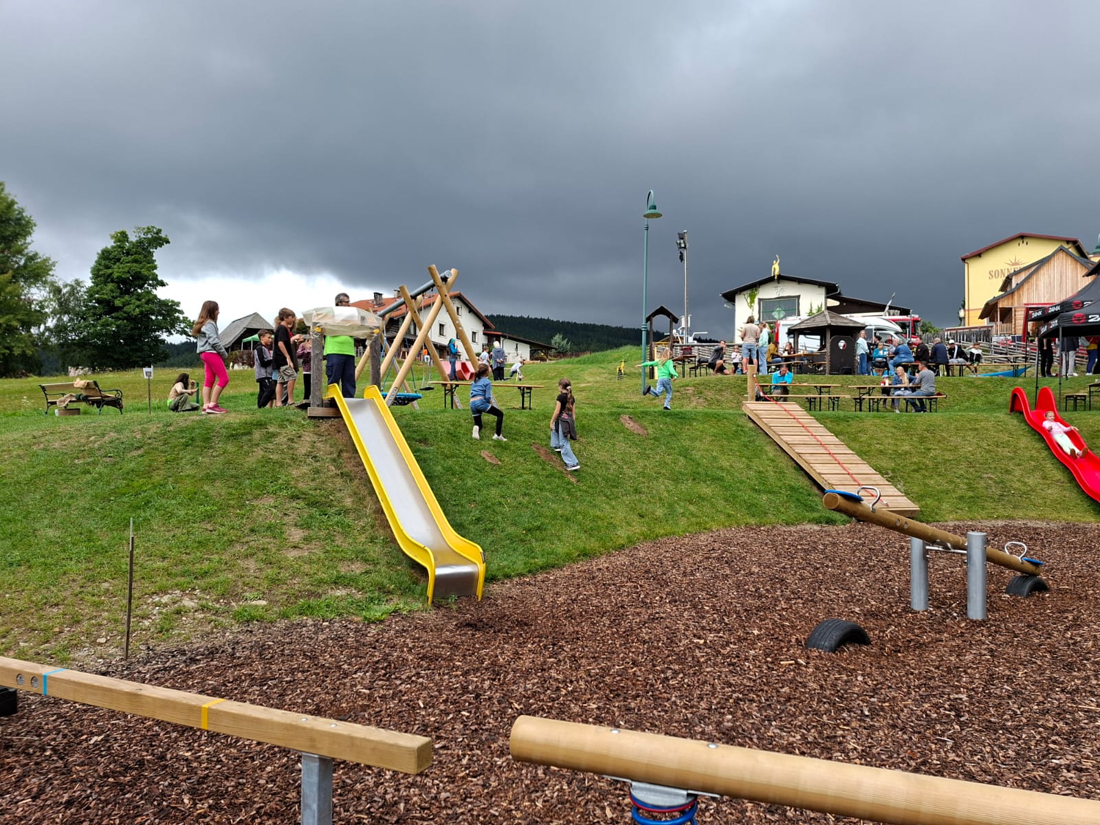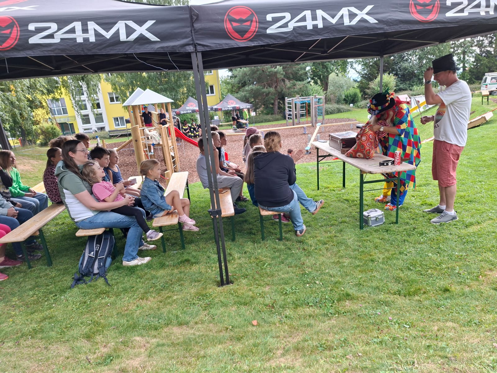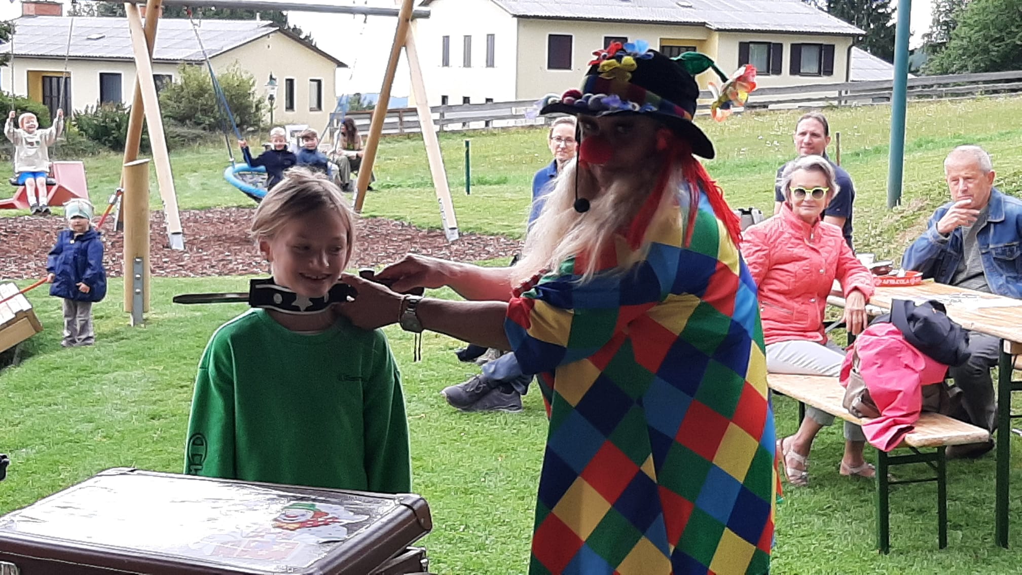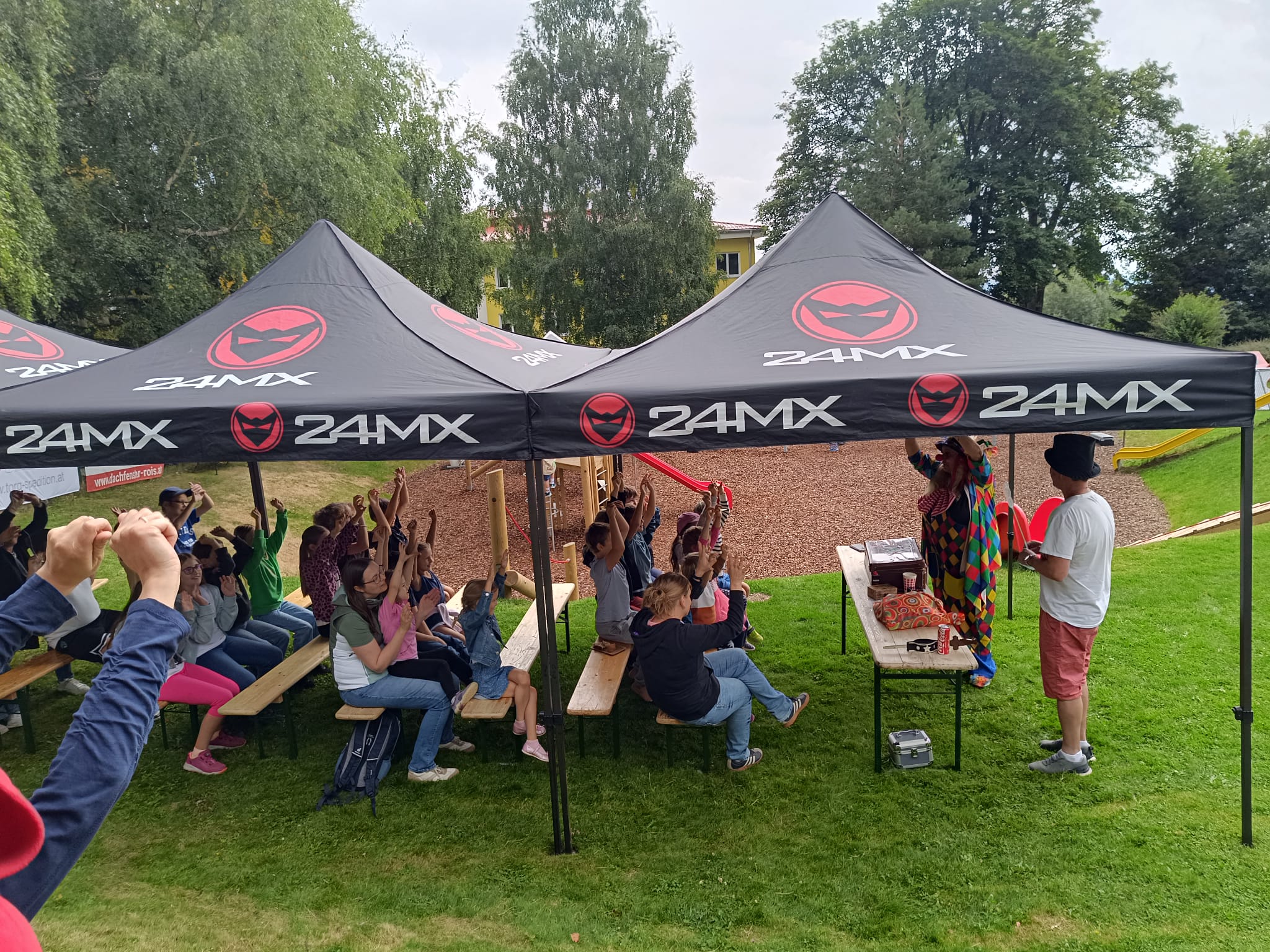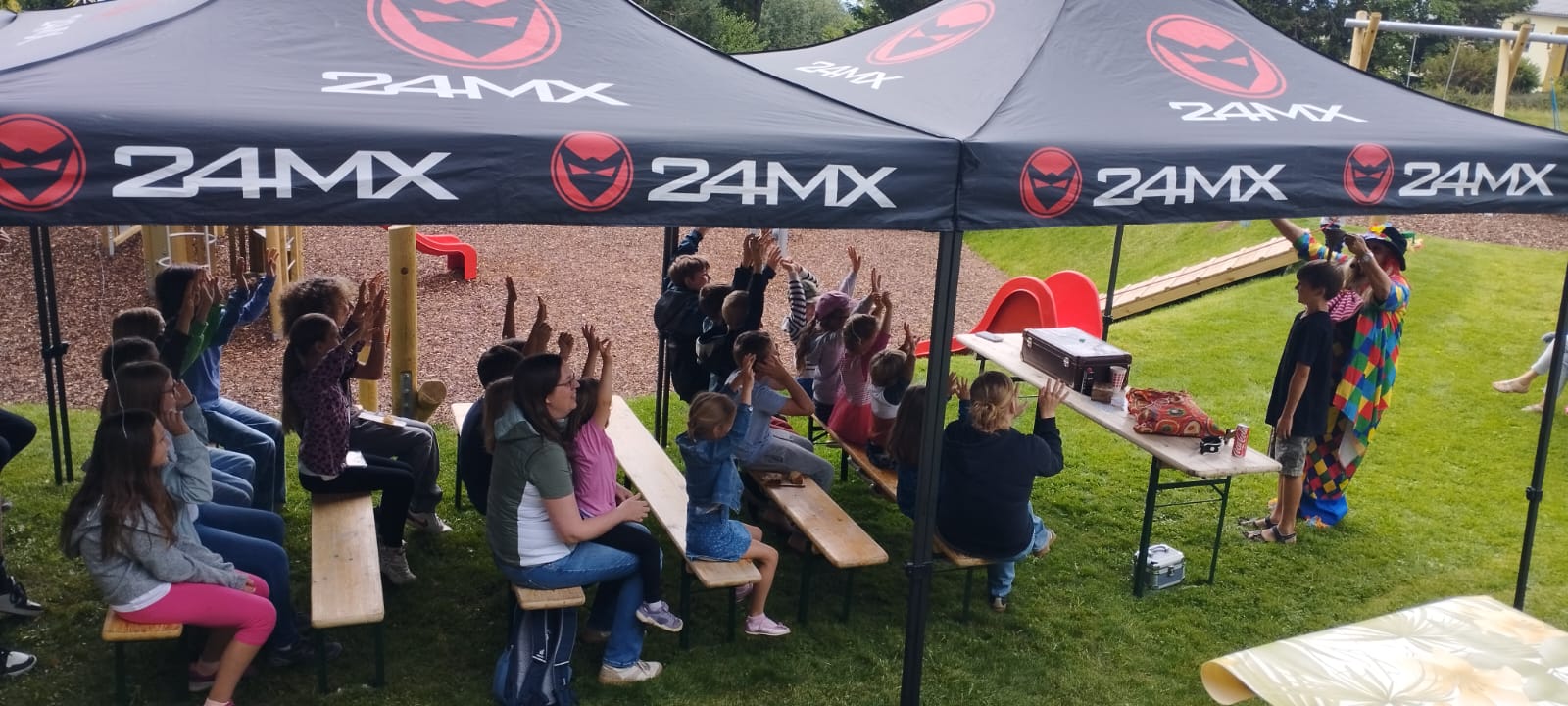 Ein fröhliches Kinderspielefest lockte am Samstag, dem 30. August 2025, zahlreiche Familien zum neuen Kinderspielplatz in Mönichkirchen. Pünktlich um 14:00 Uhr eröffnete ein bunter Nachmittag mit Clown- und Zaubershow die Veranstaltung und sorgte sofort für gute Laune bei Klein und Groß.