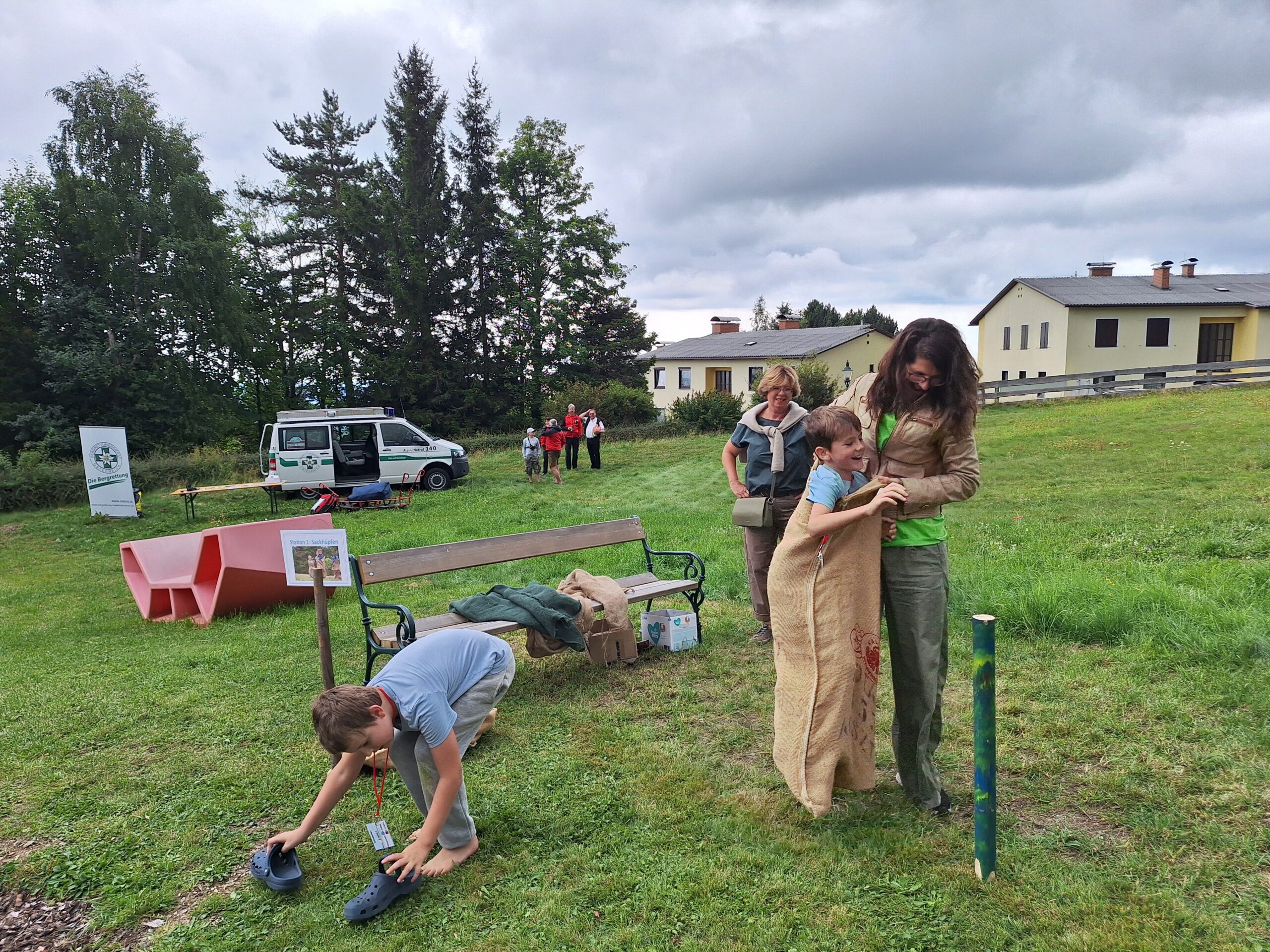 Nach dem Auftakt ging es mit einem abwechslungsreichen Wettbewerb weiter: Kinder durften an verschiedenen Stationen ihr Geschick beweisen. Neben Sackhüpfen und Fußballspielen standen auch das Zielspritzen mit der freiwilligen Feuerwehr Mönichkirchen, Geschicklichkeitsübungen von Tut Gut und viele weitere Spiele auf dem Programm.
